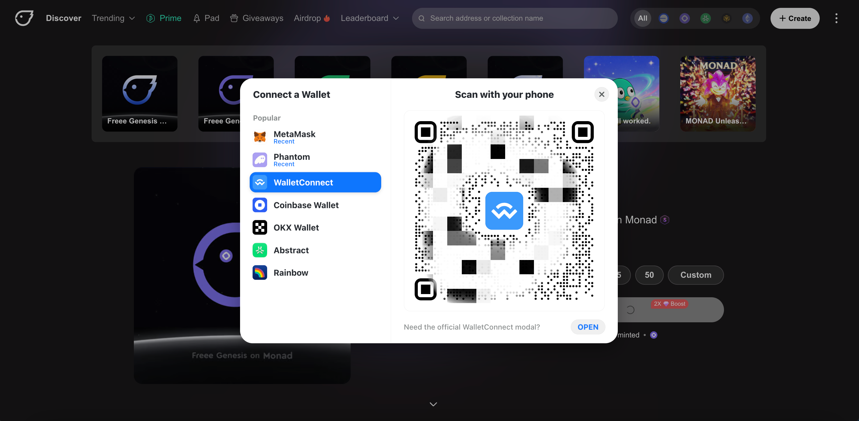 * Select "**OPEN**" next to the title "Need the WalletConnect modal?"
