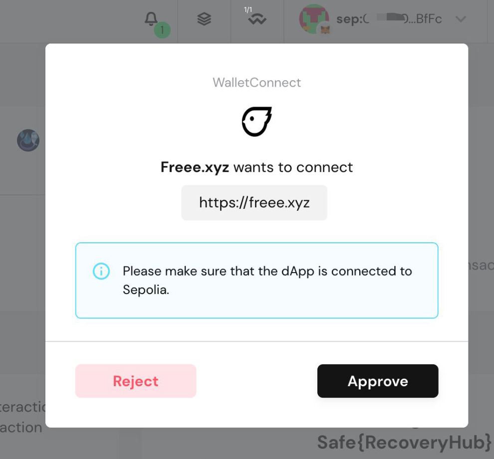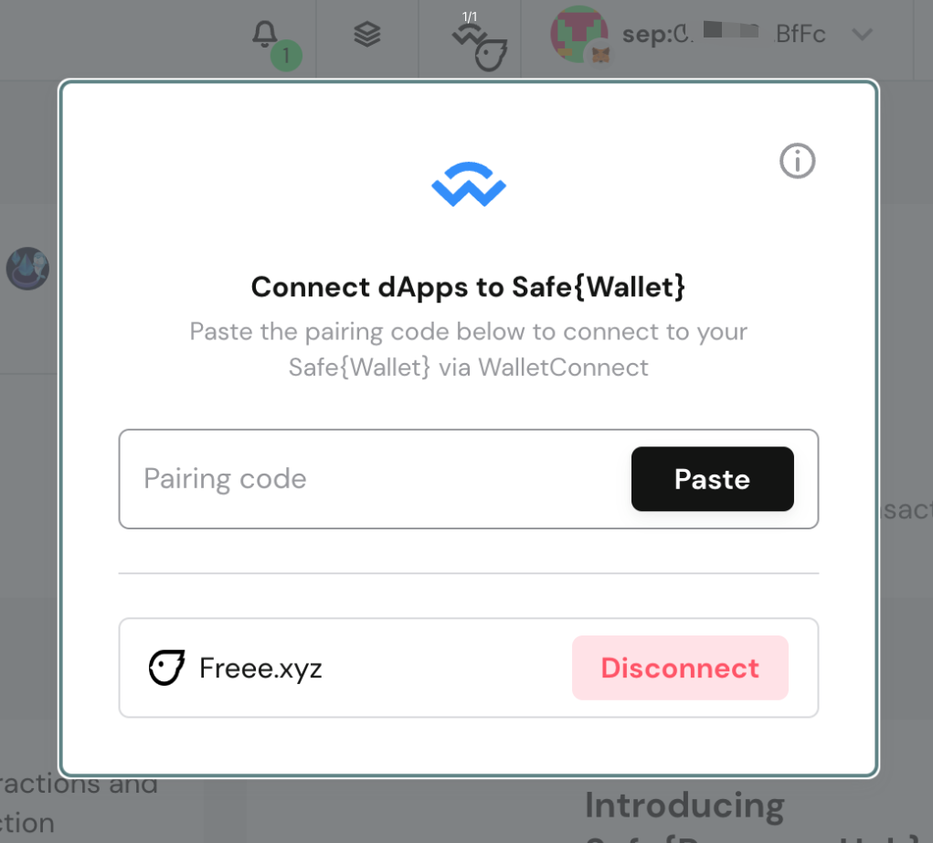 \**With the updates of Gnosis Safe and Wallet Connect, their page layouts may change, but the overall process remains the same.* \*