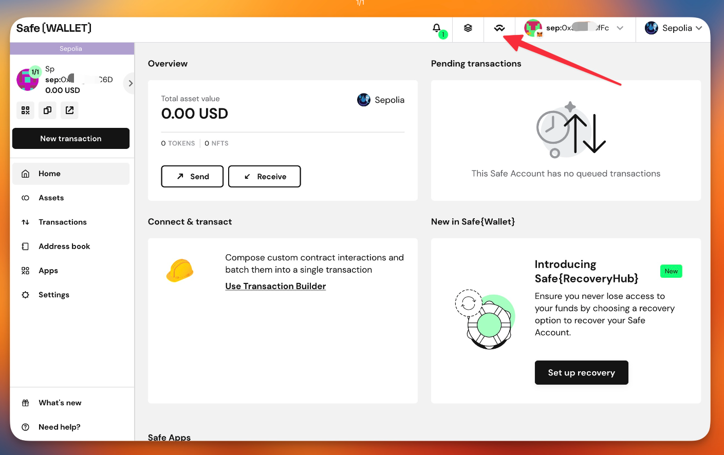 * From the homepage of your gnosis-safe, select "**Use Wallet Connect Icon**"