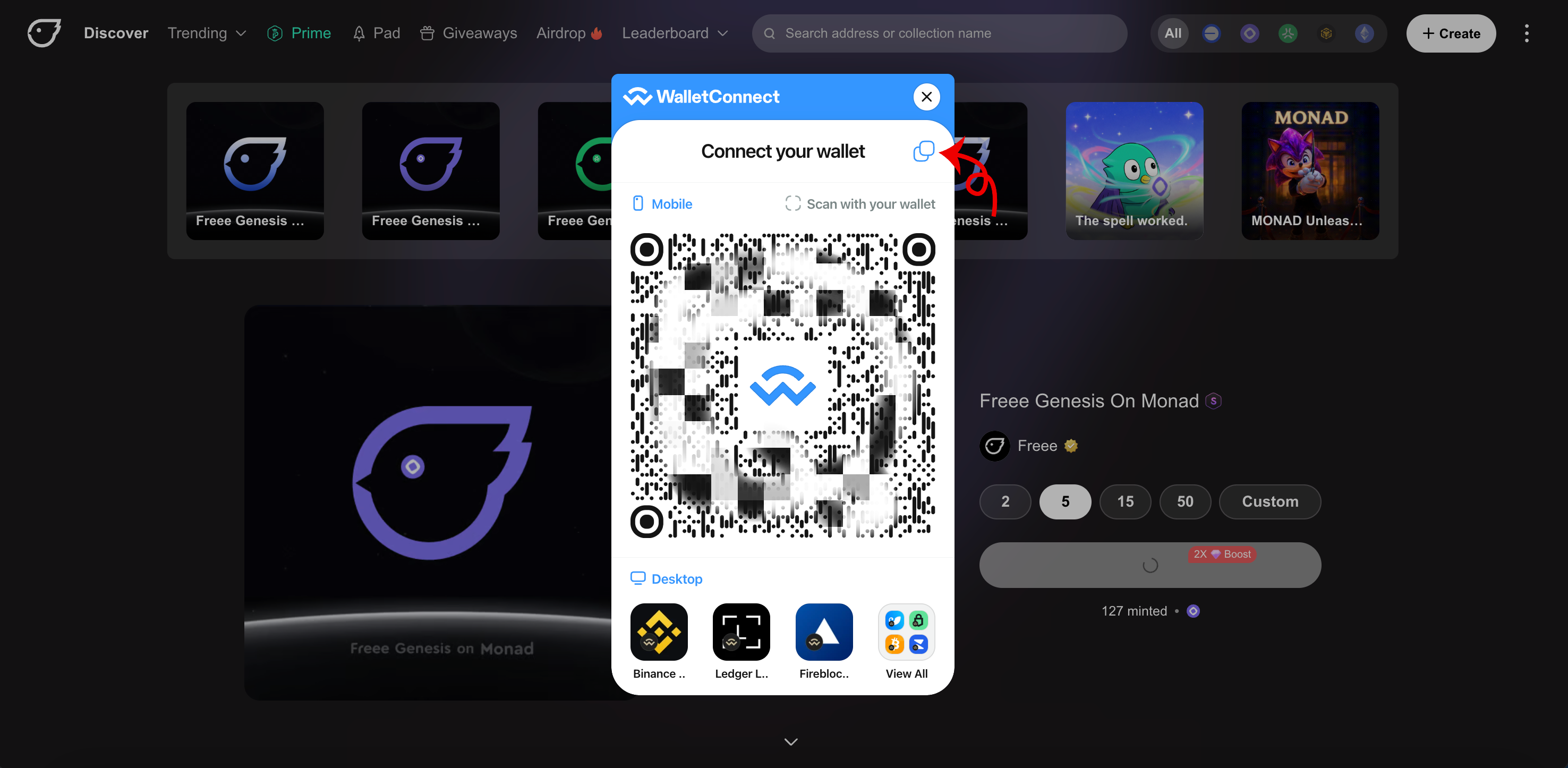 * To connect your wallet, click "**connect wallet**" and select "**WalletConnect**".